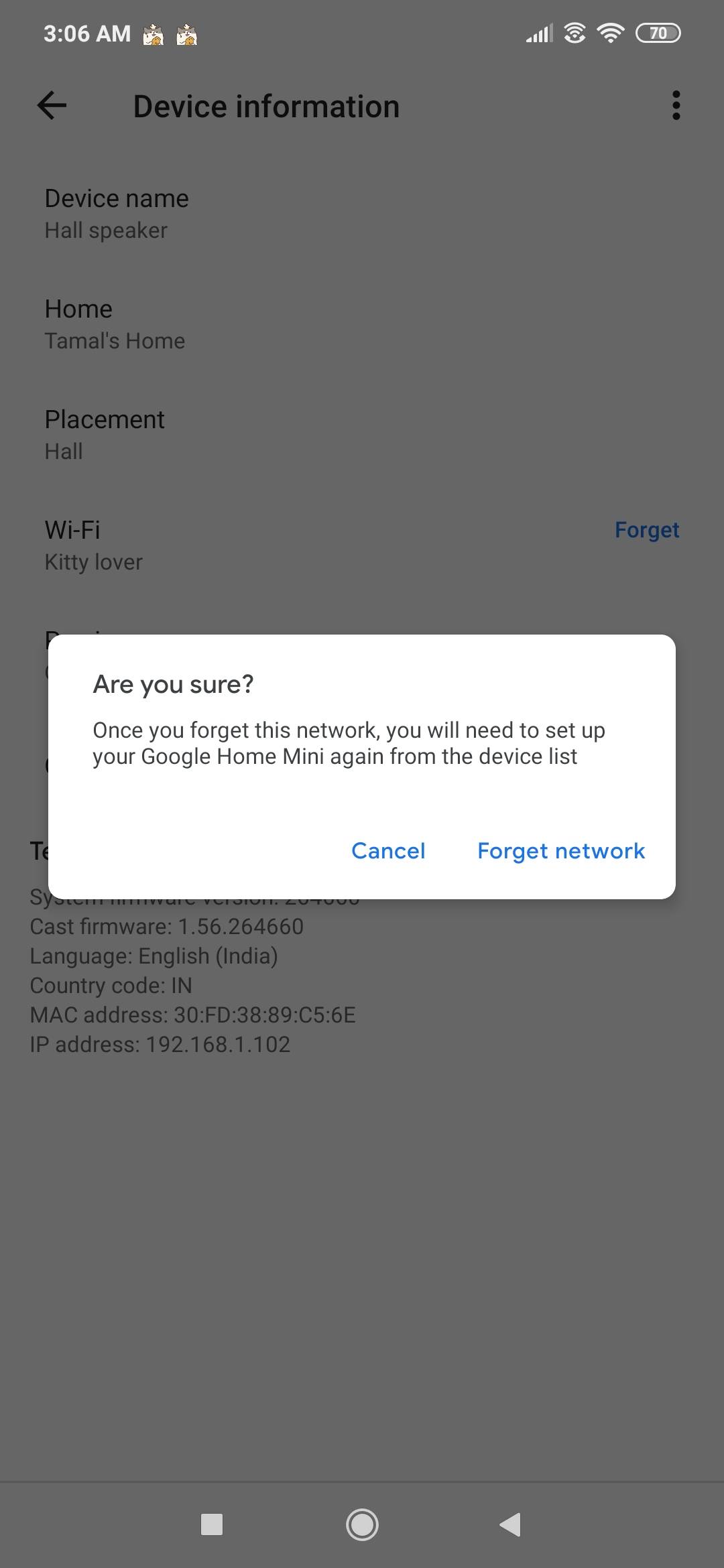 For context this nest mini can find its previous network. Turn the device over and look for a circle at the bottom. Now tap on the Device information option.